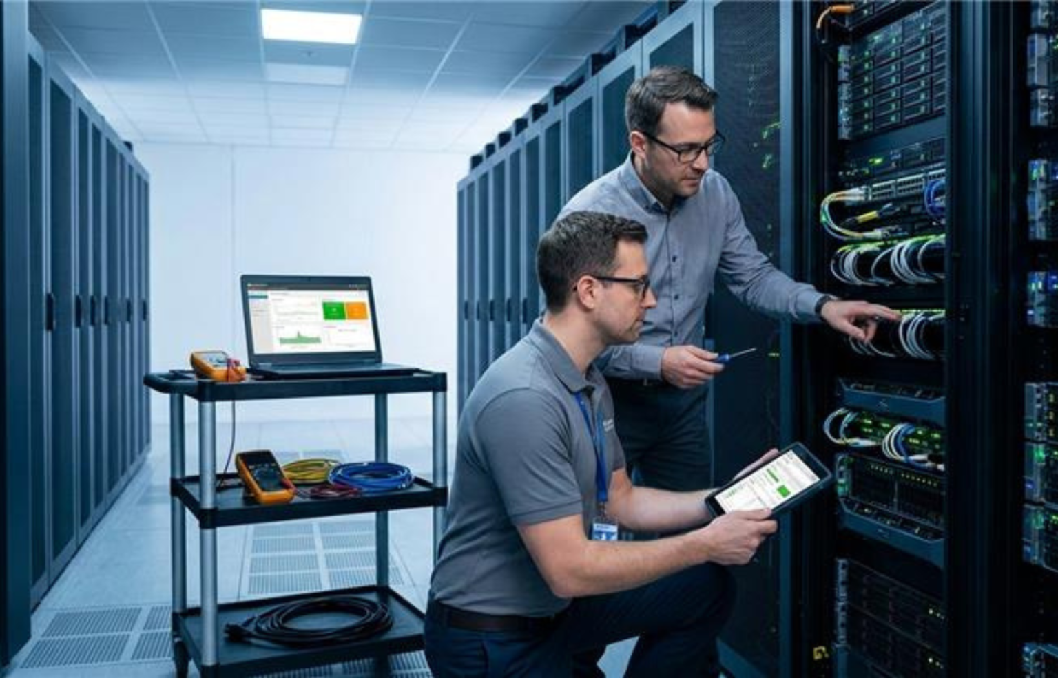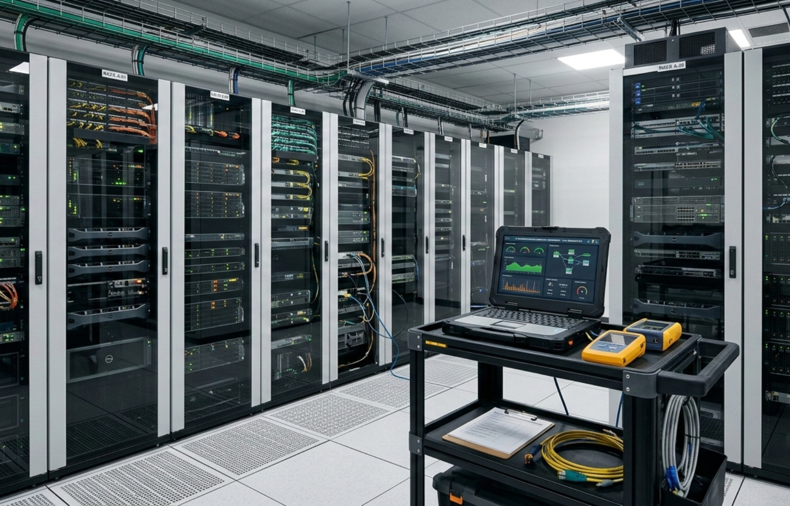 • Rack layout, airflow control, hot/cold aisle performance.